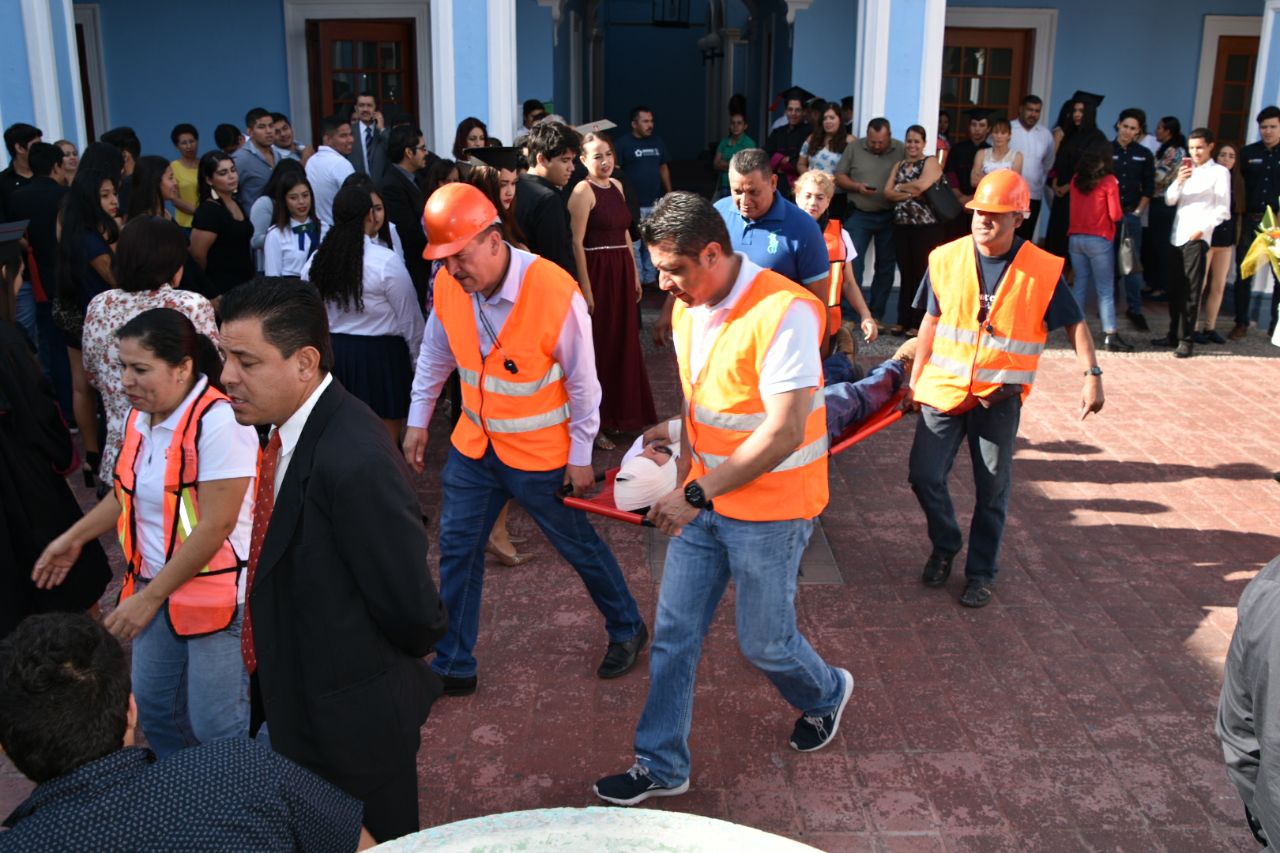 A unos días de cumplir 15 años del sismo que sacudió a Colima el día 21 de enero de 2003, el Ayuntamiento capitalino, a través de su unidad de Protección Civil, realizó este viernes un simulacro conmemorativo, en el patio central de la Presidencia Municipal de Colima.